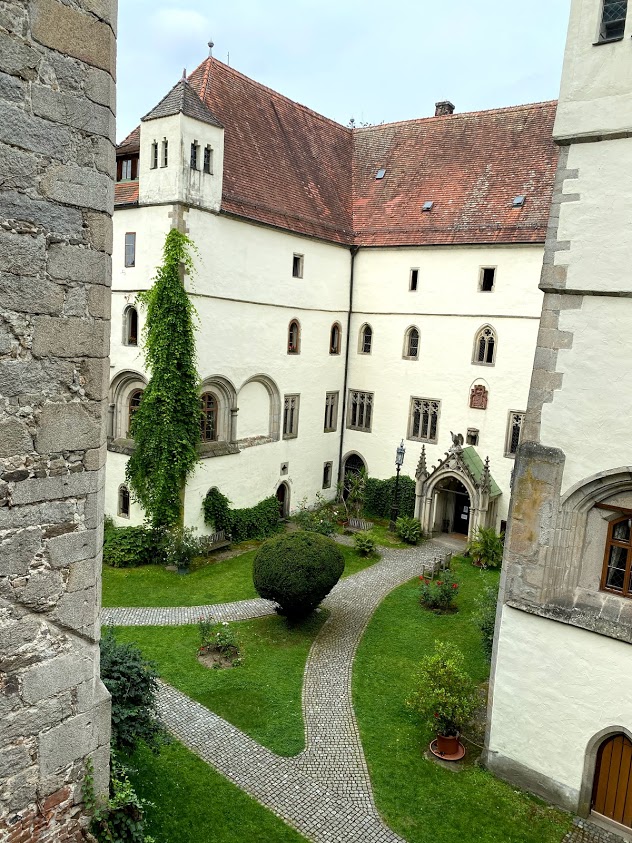 kastély udvarán a Marienbrunnen szökőkút, az egész komplexumot