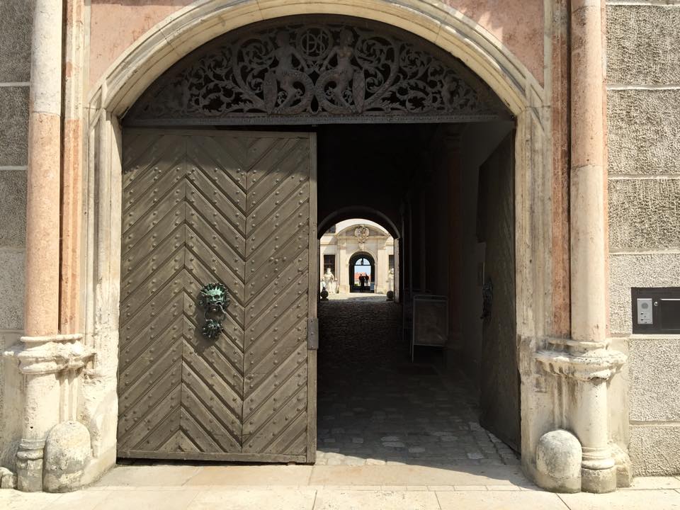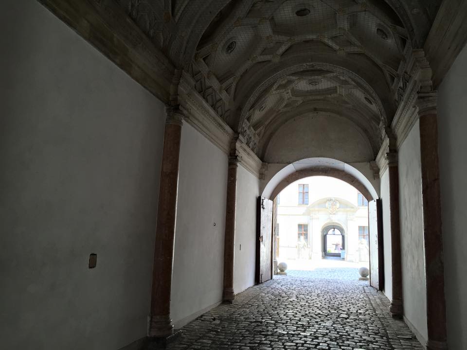 kettős kapu folyosója. A legrégebbi bajor címer 1477-ből. A bal oldalon