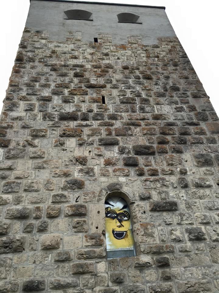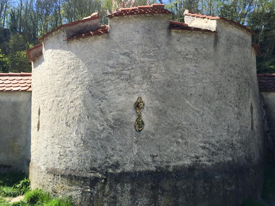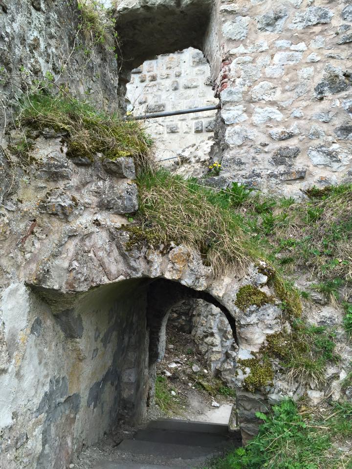 egy nagy fal megmaradt a vár fénykorából, 1100-ból. A falakon, egy az