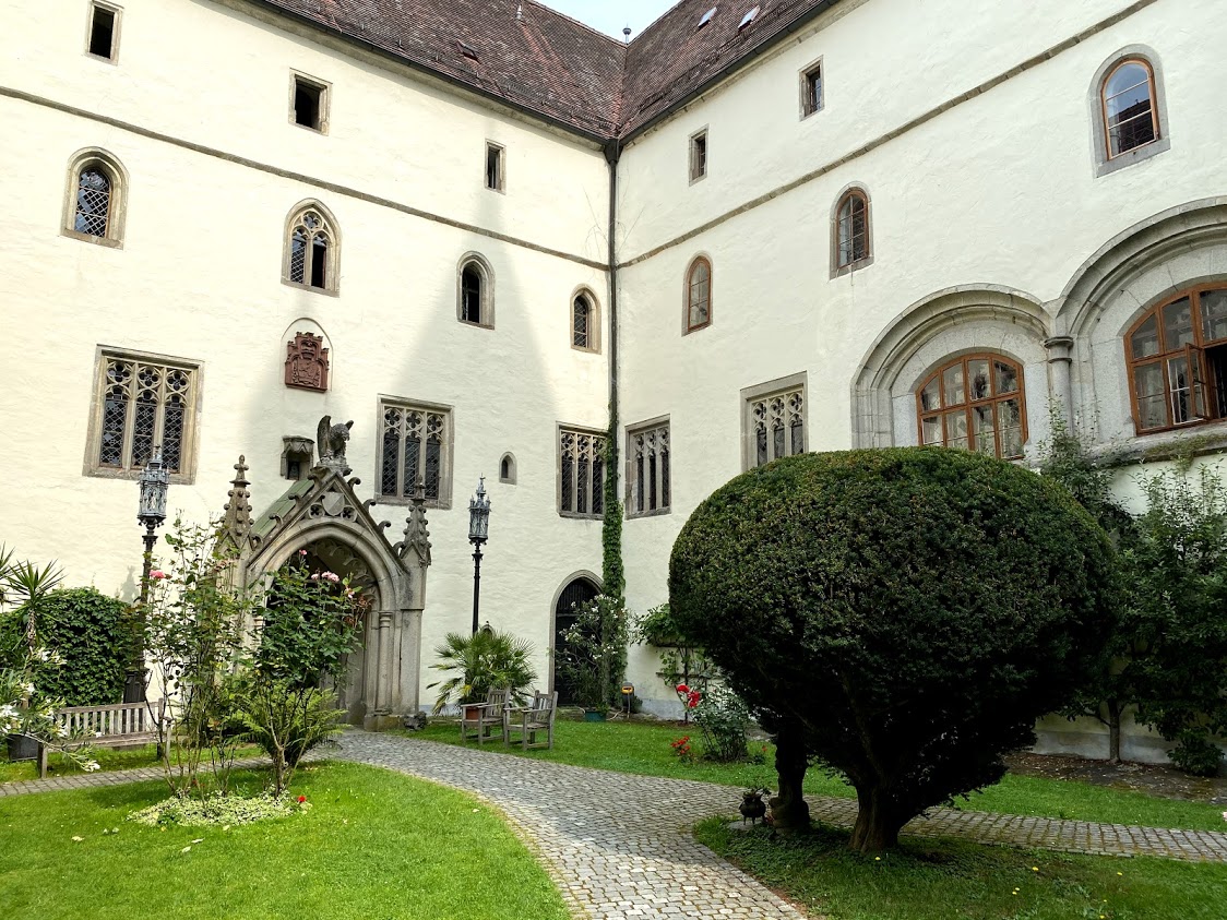 kastély udvarán a Marienbrunnen szökőkút, az egész komplexumot