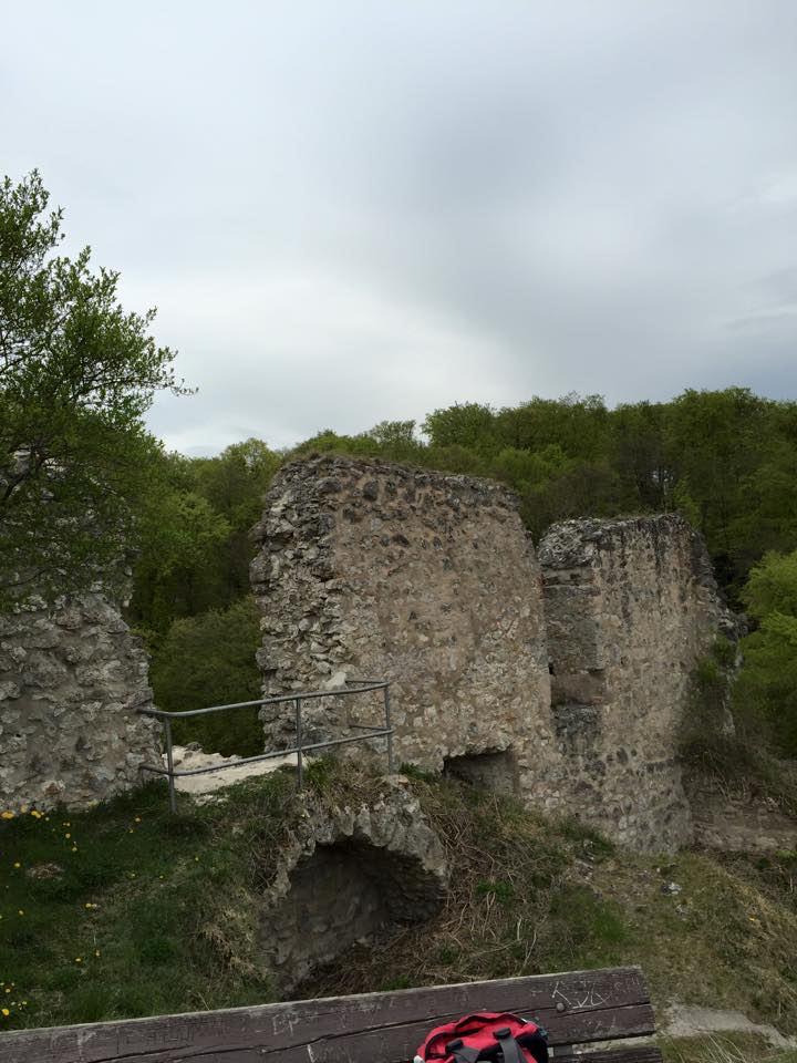 egy nagy fal megmaradt a vár fénykorából, 1100-ból. A falakon, egy az